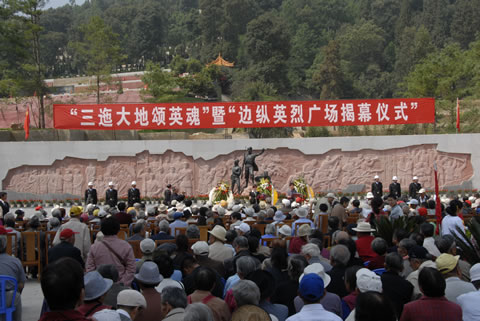 為了云南的解放,邊縱戰(zhàn)士們前赴后繼,留下了許多可歌可泣的故事,為紀念邊縱英烈,2007年,金寶山完成了邊縱英烈廣場的建設并舉行揭幕儀式,六百多位邊縱老領導、老戰(zhàn)士參加了活動。