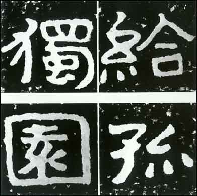 即《經(jīng)石峪》,在山東泰安。南北朝時刻于泰山一小瀑布下的大塊平整山石上,藏于水下約千年,后經(jīng)發(fā)現(xiàn),使泉水改道,才暴露出來。何人所作,至今尚無定論。字徑由一尺二,三到一尺七,八寸,現(xiàn)存一千零六十七個字,前人評為“大字鼻祖,榜書之宗”?涤袨樵u為“榜書第一”。字形在楷法中兼含隸意,故有人稱為“隸楷書”。