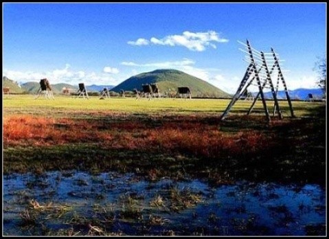 香格里拉:這就是傳說中的香格里拉,風(fēng)韻迷人,遼闊的草原、靜靜的藍(lán)天,悠閑吃草的牛羊。