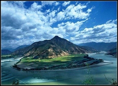 金沙江第一灣: 奔騰不息的江水流到這里需要喘息,拐過一個大彎之后才向著遠(yuǎn)方前行。