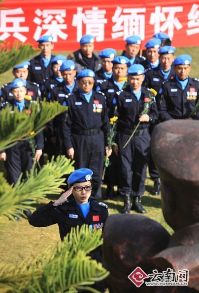 鞠躬、獻(xiàn)花、敬禮……昨日,在李欽、鐘薦勤、和志虹3位維和英雄犧牲一周年祭之時,幾十位云南邊防總隊的戰(zhàn)士和維和隊員來到隊友的墓前,追憶緬懷逝去的維和英雄。
