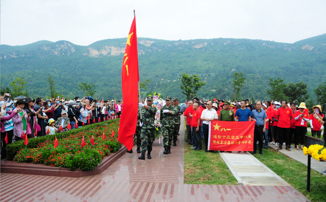 8月1日上午,金寶山忠魂園內(nèi)軍旗迎風(fēng)獵獵作響,與嘹亮的軍歌共鳴成為一首 “八一協(xié)奏曲”。