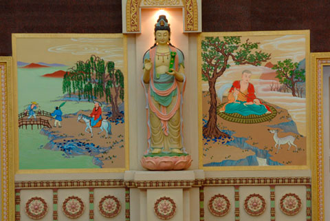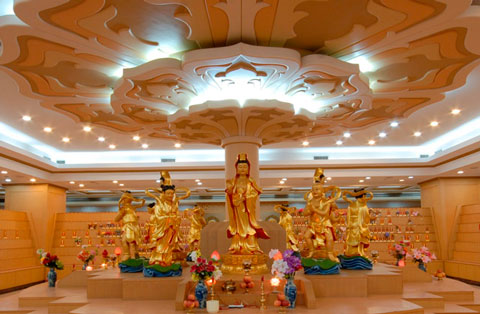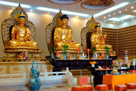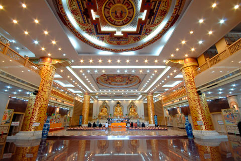 一千二百平方米的佛事大殿金光燦然,層高達(dá)十米,其博大、莊嚴(yán)與恢宏,實(shí)為罕見
