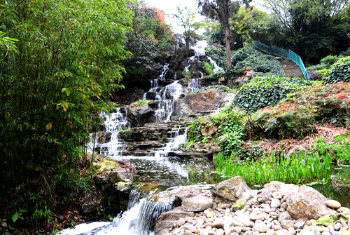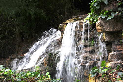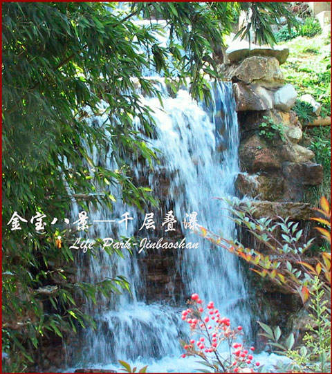 沿著潺潺溪水,拂開柳樹的萬條綠絲,踏著石砌小路拾級而上,聽到水聲漸響,千層疊瀑如巨幅的國畫展示在眼前。