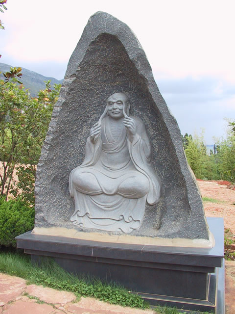 伏虎羅漢:他修行出家的寺門外常有虎嘯,他便將食堂的飯菜取出喂給老虎吃,將老虎收伏了,故名伏虎羅漢。
