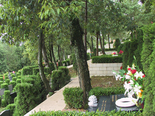 仁園即仁D,位于安樂園南側(cè)中下段,其形狀方正,右邊與登山輔道相鄰。仁園各成臺布局明朗,呈梯極沿山勢逐步向下過渡,前端與軍魂園相接。蒼勁挺拔的原生樹木,如同疏密有度的亭亭傘蓋,遍布園區(qū),清新的空氣流動其間,陽光投下斑駁的樹影,而“仁者樂山”的超然境界,盡在不言之中。