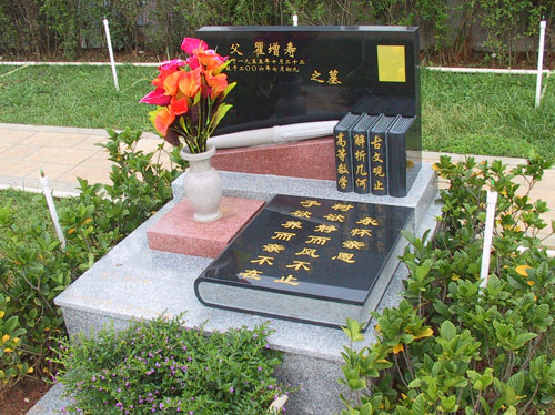根據(jù)主題園區(qū)的人文特征,設(shè)計風(fēng)格鮮明的墓型,不僅突出了群體的精神特質(zhì),而且具有強烈的時代感。如軍魂園墓型融合軍旗、軍徽等元素,教師園采取鋼筆、書本等元素,復(fù)活園運用十字架、雕花等元素。由于有統(tǒng)一的環(huán)境營建和統(tǒng)一風(fēng)格的墓型,使主題園區(qū)的人文特性鮮明突出,具有很高的藝術(shù)觀賞價值。