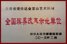 | 全國殯葬改革示范單位 2013年3月1日,國家民政部公布了第三批全國殯葬改革示“范單位名”單。金寶山藝術(shù)園林名列其中。金寶山將努力做好示范作用,不斷前進,不斷完善。 |