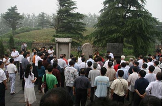 荀子墓位于臨沂市蒼山縣蘭陵鎮(zhèn)東南約一公里處,蒼山縣位于蘇魯交界處、沂蒙山區(qū)南緣,素有“中國大蒜之鄉(xiāng)”、“中國民間藝術(shù)之鄉(xiāng)”之美譽(yù)。過去,我只知道荀子葬在蘭陵,但很少把蘭陵與臨沂與蒼山聯(lián)系起來。蘭陵給我留下美好的印象,更主要是有唐朝大詩人李白在《客中行》中所描述的:“蘭陵美酒郁金香,玉碗盛來琥珀光。但使主人能醉客,不知何處是他鄉(xiāng)。”我們到達(dá)荀子墓時(shí),沒想到縣里、鄉(xiāng)鎮(zhèn)的十余位同志已經(jīng)等在那里。下車寒暄后,頂著烈日,大家一邊擦著汗,一邊聽女講解員在介紹荀子以及荀子墓的情況。也許是由于緊張的緣故,也許是平時(shí)來這里的人太少的緣故,這位女講解員的知識(shí)儲(chǔ)備顯然不足,介紹起來磕磕絆絆。我寬慰她說,沒關(guān)系,別緊張,她便越發(fā)緊張了。后來我才知道,我來的時(shí)候,馮君已向基層同志介紹說,我是研究荀子的專家。專家實(shí)在是不敢當(dāng),但當(dāng)我聽完介紹后,我還是把荀子與孔孟思想的關(guān)系,荀子與中國傳統(tǒng)文化的關(guān)系簡略地向周圍的人做了介紹,這時(shí),我自己儼然成了一名解說員。天接近中午,陽光依然灼熱,四周的莊稼無力地耷拉著葉子,顯得疲憊而無奈。我提出隨便走走看看,順便照些照片。當(dāng)我環(huán)顧荀子墓四周,再想想近在咫尺的曲阜“三孔”,感覺歷史似乎太不公平,同為一代思想大家,身后境遇竟如此不同。荀子墓周圍田野空曠,花草瘋長,顯然平時(shí)很少打理,荀子默默地躺在那里,荒涼、寂寞、孤單。